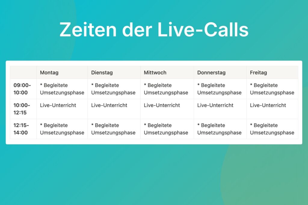 Die Teilnahme an allen Live-Calls ist keine Pflicht, viele nutzen die Sessions gezielt, wenn sie Unterstützung brauchen.